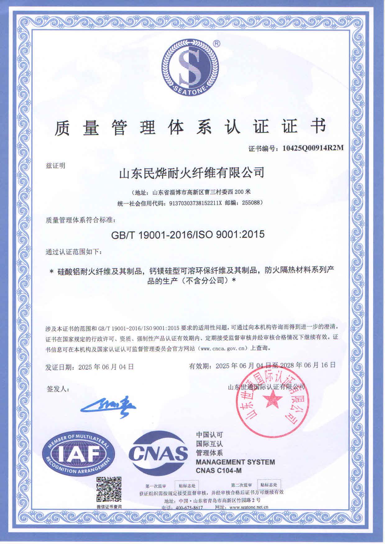 山東民燁耐火纖維有限公司坐落于山東淄博高新開發區,公司成立于2002年,是一家集陶瓷纖維及其配套耐火、 隔熱材料的設計、研發、生產、銷售、施工于一體的股份制企業。下設內蒙古民燁新材料科技有限公司、山東民燁耐火纖維有限公司上海分公司、山東民燁耐火纖維有限公司工程分公司、懷仁縣昌元陶瓷原料有限公司。經過20年的潛心經營,公司在生產規模、市場知名度方面均已成為國內陶瓷纖維材料行業的領先企業。山東民燁為中國工業窯爐材科系統定制專家,這一民族品牌意識已經深入人心。